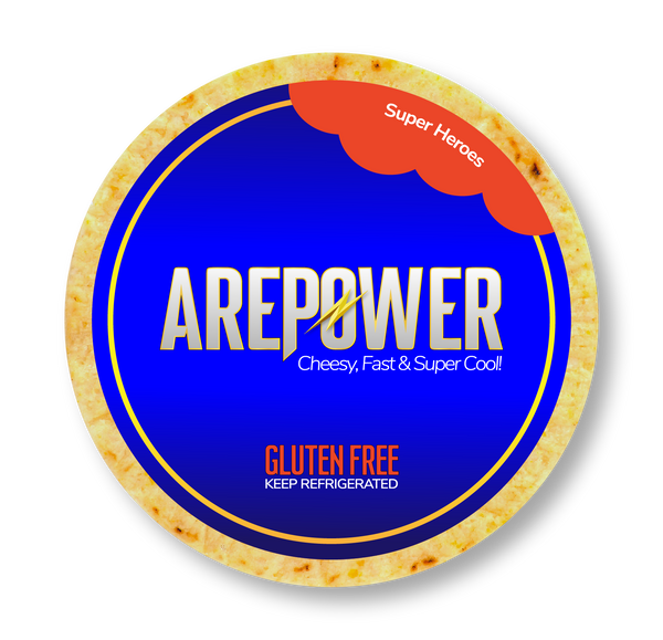 Cheese arepa with Super Heroes characters